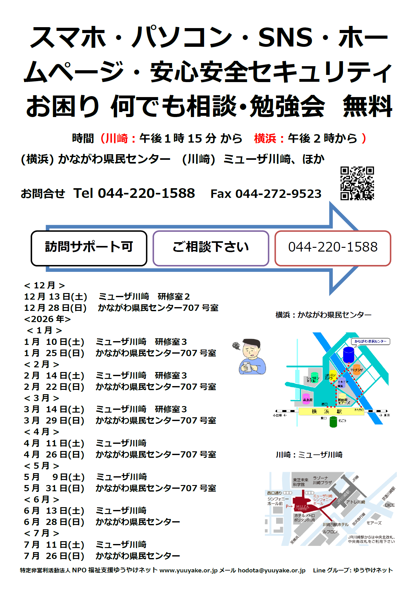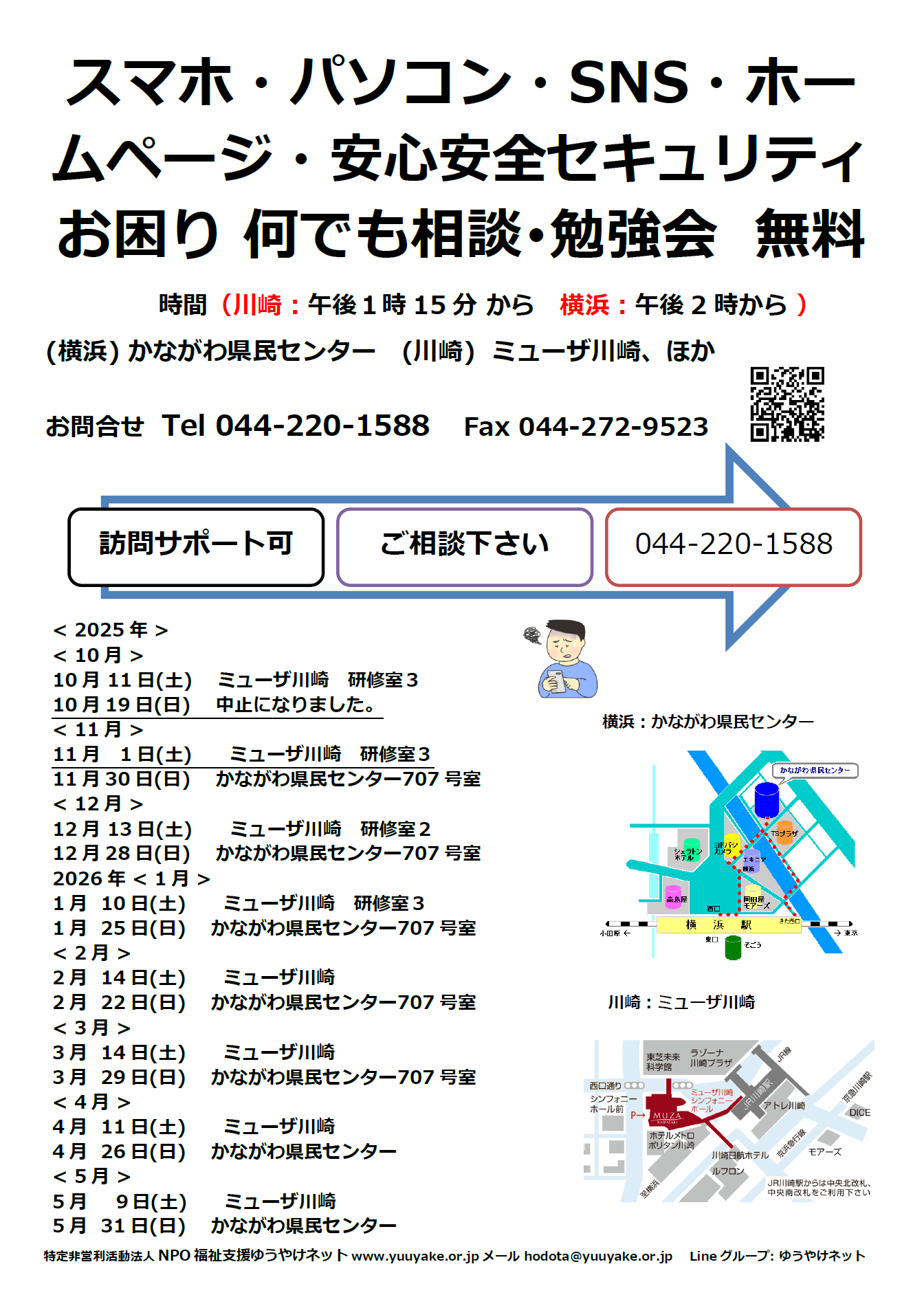 川崎、横浜、神奈川県内および東京の高齢者や障がい者、もしくは福祉・医療・介護・市民活動団体向けに訪問サポートおよびデジタルボランティアを行っております。